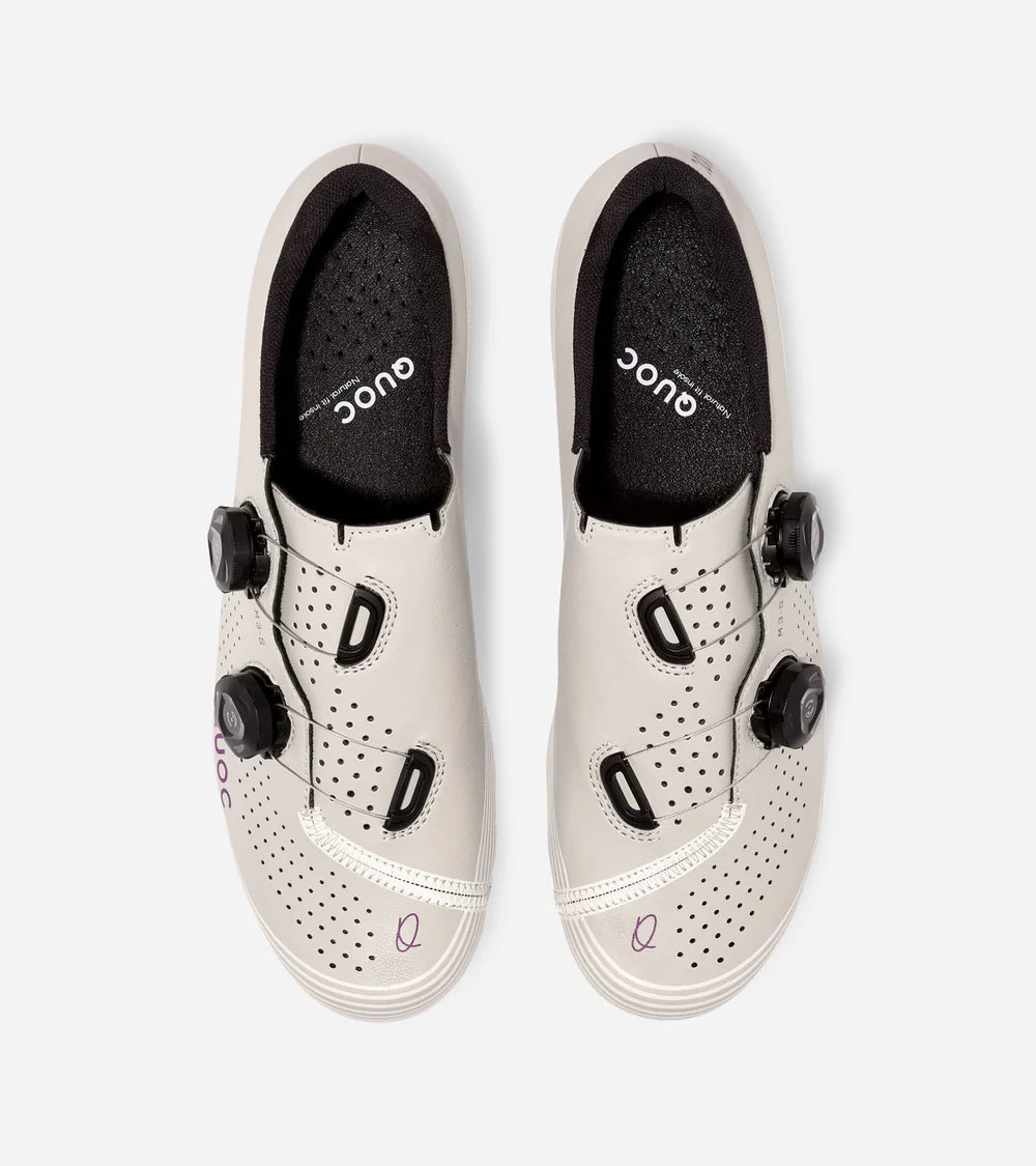A wave-print design flows across the upper, adding a subtle yet distinctive flair, while the wrap-fit construction locks the foot in place for maximum efficiency. Ventilation is optimised with airflow channels in the sole and perforations in the upper, keeping feet cool on long rides. Available in White and Chalk colourways, the shoe merges QUOC’s signature elegance with modern detailing. Whether racing, training, or simply riding socially, the M3 Sport is at home where style, comfort, and performance intersect.